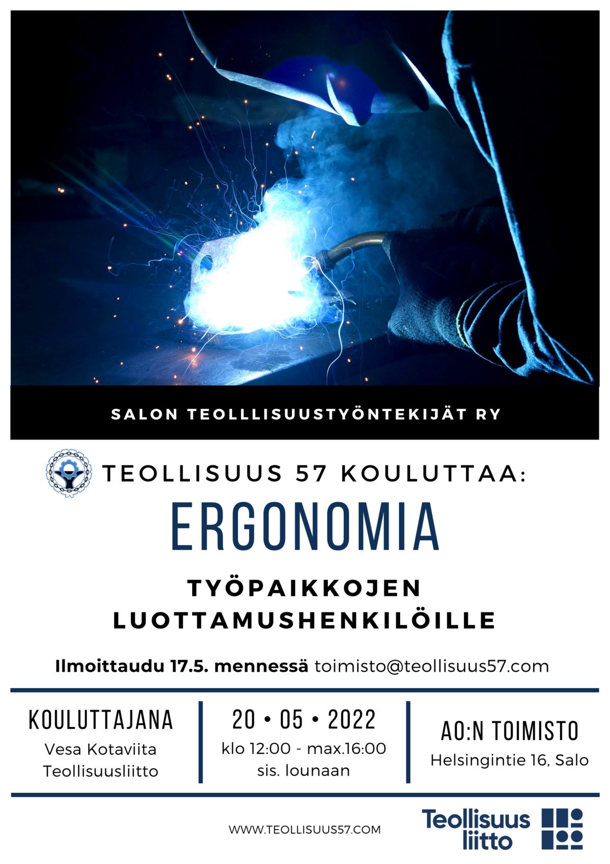 Kouluttajana toimii Vesa Kotaviita Teollisuusliitosta. Ammattiosasto tarjoaa lounaan. Ilmoittaudu 17.5. mennessä toimisto@teollisuus57.com. Tervetuloa!