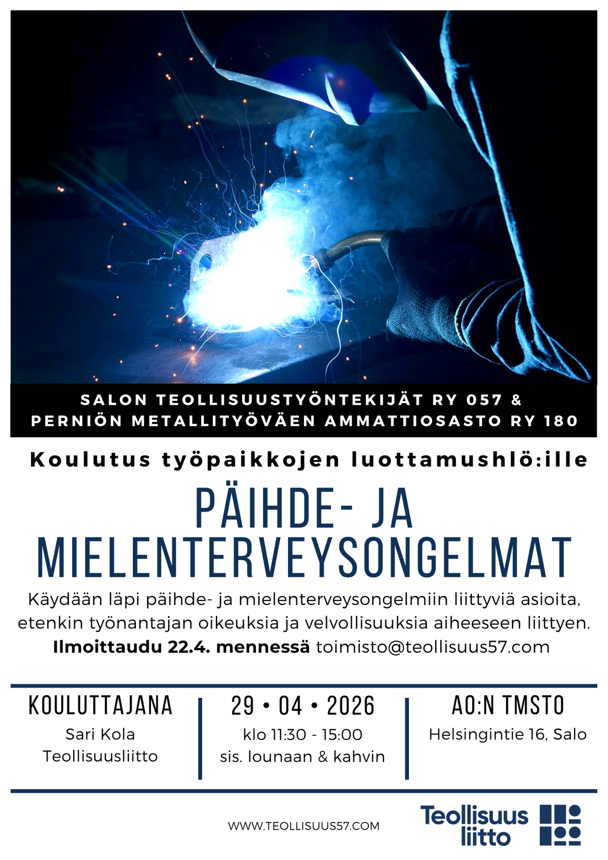 Ilmoittaudu viimeistään 22.4. toimisto@teollisuus57.com / whatsapp.